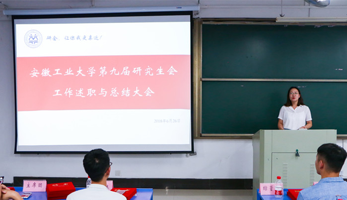1、各部门代表做工作述职汇报。在过去的2017-2018学年里第九届研究生会各部门通力合作,开拓进取,开展了各式各样的精彩活动,从形式到主题都做到了创新,学术部开展的学术沙龙活动、优秀论文展示活动极大的提高了我校研究生的学术氛围;体育部组织参加足球队、篮球队均在校“化工杯”四球联赛中取得冠军;文艺部的组织的健美操队在校级比赛中荣获一等奖,研院学子参加的皖南歌手大赛也喜获佳绩;新媒体中心尽职尽责,每天微信推送校园内外研究生所关注的内容,举办的感恩节与母亲节特色活动获得大家一致好评;志愿者协会将我校研究生的爱心送至向阳护理院;宣组部联合开展的诗歌大会将古典诗词的美展现的淋漓尽致;研院每场活动的都能看到综管部和联络部的辛勤付出;信息部为毕业学生的三方派遣等工作一直在背后默默支持。