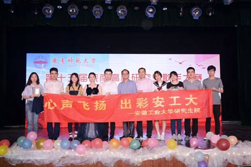 2019年5月17日晚,由我校等皖南五所高校主办,安庆师范大学承办的以“唱响青春主旋律、砥砺奋进新时代”为主题的第十三届皖南高校研究生歌手大赛在安庆师范大学师生活动中心隆重举行。我校选派的三位选手和流金岁月战队表现突出,一举获得个人和团体双料冠军。