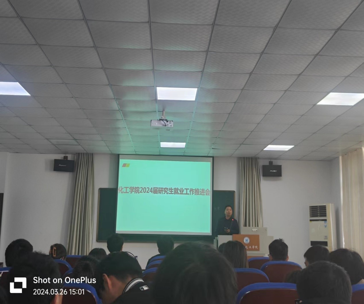 为进一步促进2024届研究生高质量有序就业,化工学院于3月26日在化工南楼207召开了2024届研究生就业推进年级会。学院党委副书记、纪委书记、副院长冀秀芝,研究生辅导员韩梦成及全体2024届研究生参加。