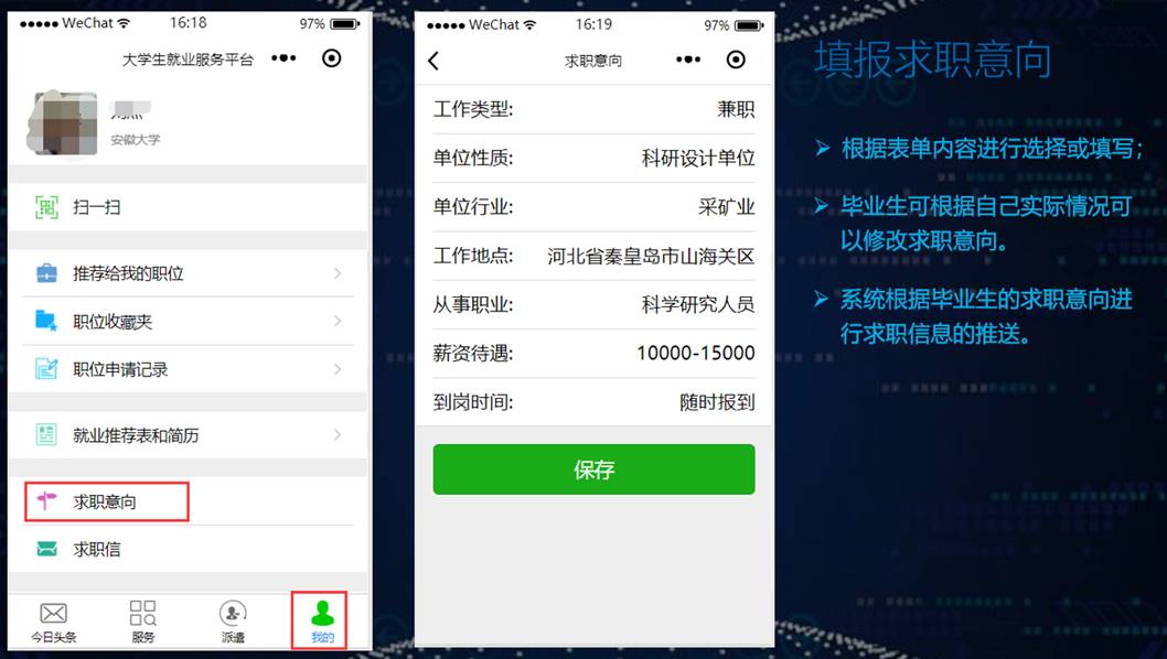 3.目前学生不能维护档案去向,默认都是派回原籍,学生可以放心维护就业信息。如签协议就业有调档要求,请与张老师联系。